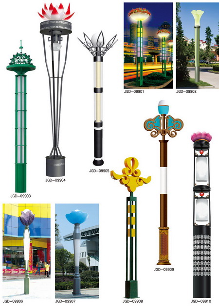 景觀燈分類:城市標志性景觀燈、仿古景觀燈、鏤空現代景觀燈、不銹鋼景觀燈、藝術造型景觀燈等