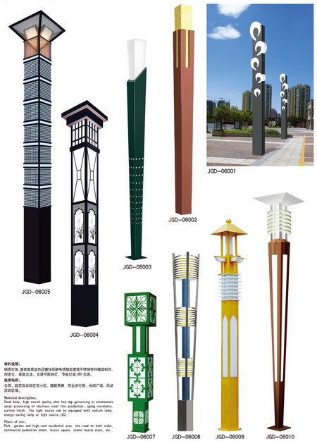 庭院燈分類:仿古庭院燈、現代功能性庭院燈、不銹鋼庭院燈、歐式庭院燈、砂鑄鋁庭院燈、壓鑄鋁庭院燈等各種特色庭院燈