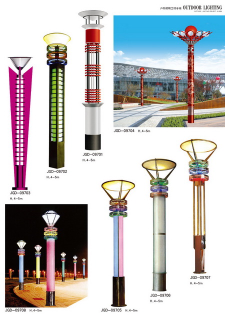 景觀燈分類:城市標志性景觀燈、仿古景觀燈、鏤空現代景觀燈、不銹鋼景觀燈、藝術造型景觀燈等
